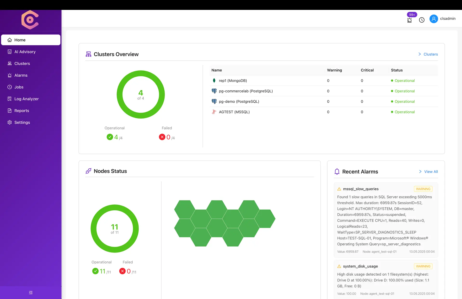 ClusterEye, MSSQL, MongoDB ve PostgreSQL veritabanlarınızı tek bir merkezi platformdan izlemenizi, yönetmenizi ve optimize etmenizi sağlayan akıllı bir yönetim aracıdır. Yapay zeka destekli analizler, proaktif optimizasyon önerileri ve otomatikleştirilmiş yönetim özellikleri sunarak veritabanı altyapınızın verimliliğini ve kararlılığını artırır.