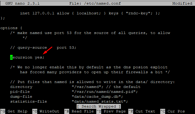 1 : nano /etc/named.conf komutu ile conf dosyamızın içerisine giriş yapıyoruz ve recursion yes; olan her yeri no ile değiştiriyoruz.